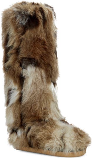 Complete your look with the Arctic-inspired style of an over-the-knee boot covered in fuzzy, textured faux fur.