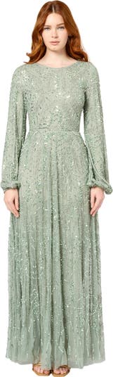 Gorgeous embellished maxi dress in frosted pink color from our collection SS 2025. The stunning hand embellishments and beading will have all eyes on you and you sparkle all night long. Perfect for Prom, a black tie event or any special evening occasion