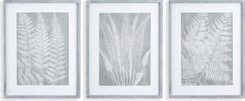 - In a soothing gray tone, these fern frond prints are a play on positive and negative space. Bold in scale, with a feminine aesthetic, this set of prints is finished off with real mats and coordinating gray frames.