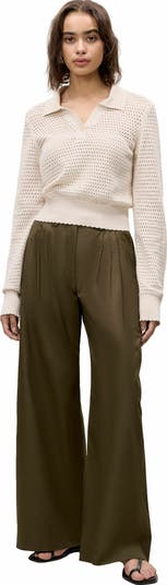 Featuring a pointelle stitch on the body and a seed stitch at the collar, this long-sleeve beige sweater is finished with scalloped edges at the collar, cuffs, and hem for a refined touch. A faux horn button adds a hint of vintage-inspired charm. Crafted from a breathable cotton-linen blend, it’s a lightweight and versatile staple for any season.