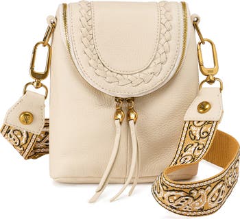 Decorative whipstitching and logo-etched hardware highlight the richly grained leather of a compact crossbody bag fitted with ample pockets for storing your smaller essentials while on the go.