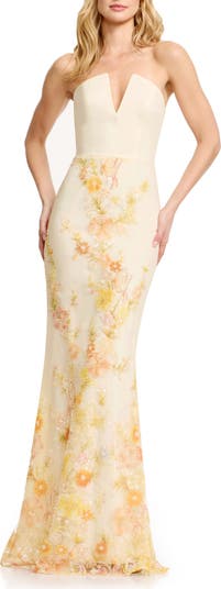 Fernanda Bead Embellished Floral Strapless Gown