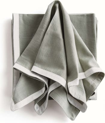 Bring a touch of softness to the table with this set of four 100% woven cotton napkins. Beautiful in tone and texture, the white & green combination is made to add a verdant touch to any tablescape.