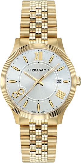A silvery sunray dial with a double Gancio logo adds Ferragamo's sophisticated DNA to this elegant and precise timepiece.