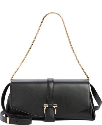 A golden Gancio clasp punctuates the front flap of this contemporary shoulder bag that's crafted in Italy from semigloss calfskin leather. Custom golden tabs shape the bellows for an outline that echoes a lily, the symbol of Florence. The versatile style comes with removable chain and leather straps, allowing you to carry it as a clutch, on the shoulder or crossbody.