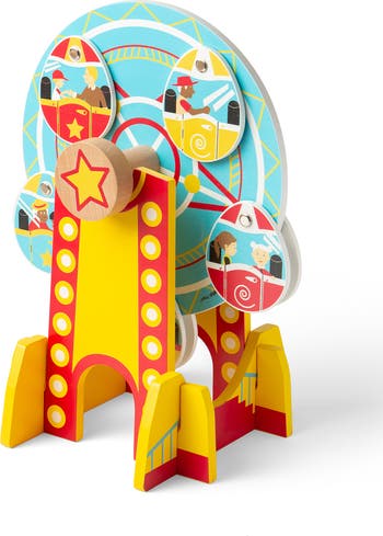Turn the wooden cog and watch the carnival goers spin around on this fun fairground ride. Our Ferris Wheel train tunnel has been carefully crafted with interactive features and pops of bright reds, yellows and blues to thrill young railway enthusiasts.This wooden train accessory pairs perfectly with our charming Fun Fair Train Set. It's great for imaginary play, which supports the development of children's creative thinking, language skills, and communication. Learning how to twist the cog will also help to improve their dexterity.Most other major wooden railway brands are compatible with Bigjigs Rail's wooden train accessories. Made from high quality, sustainably sourced FSC® Certified wood. Conforms to current European safety standards. 31.7cm H x 18.6cm W x 18.2cm D. Suitable for 3+ years.