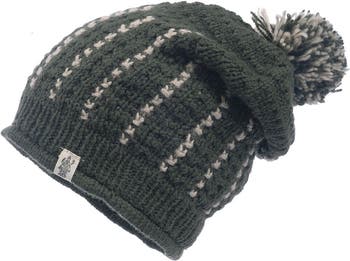 The Ferry slouch is 100% merino wool and partially lined with fleece, featuring two tone pom pom. Handmade in Nepal.