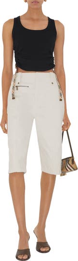 Debuted on the Burberry Summer 2025 runway, a rib-knit tank top in a cotton blend jersey. Cut to a slim fit, the ruched sides can be adjusted with the Burberry Check side straps and B buckles.