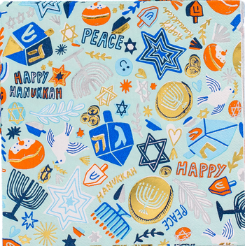 Celebrate the Festival of Lights in style with these Hanukkah napkins, featuring a festive color palette and sparkling gold and silver foil accents. Perfect for Hanukkah dinners, parties, or family gatherings, these napkins add a bright and cheerful touch to your holiday table while keeping celebrations stylish and fun.