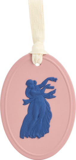 A celebration of artistry, this jasperware ornament blends soft pink tones with intricate blue relief work, adding a touch of sophistication to your festive traditions.