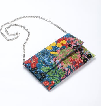 Make an elegant statement with this stunning multicolor Festive Floral Embroidered Clutch. Featuring a floral french knot embroidered design with intricate bead and sequin accents, this bag is perfect for day or night occasions. The removable silver chain and internal zipper pocket provide convenience and style, while the classic envelope clutch design completes the look. Bring sophistication and luxury into your wardrobe with this one-of-a-kind piece.