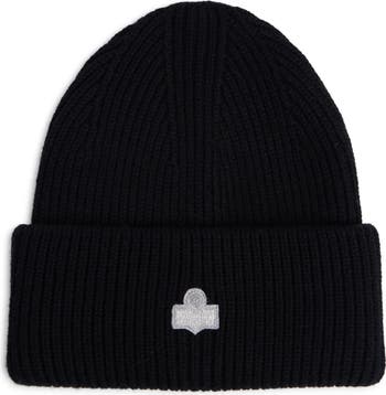 Bundling up feels ultraluxe in this woolly, cotton-rich beanie with an ear-warming cuff featuring an embroidered logo patch modeled after the designer's childhood signature.