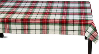 bring a merry touch to any holiday display with festive plaid tablecloth. featuring cotton construction and a classic plaid design, this piece is a stylish and functional addition to your tablescaping essentials this season. extremely versatile relaxed enough for casual affairs, yet luxe and refined for more elegant soirees.