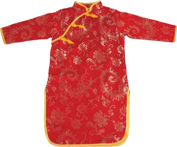 3 - 5 years. A brightly colored red dress with stylistic gold patterns represents the traditional colors of the cheongsam, a traditional Chinese dress. Hook-and-loop closures allow children to practice dressing and undressing, encouraging independence. Add additional stories, crafts, foods, and pictures to encourage children to learn more about the cheongsam and the many other rich traditions that come from China. Made of soft, 100% polyester machine-washable fabric.