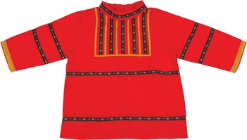 3 - 5 years. Explore the rich history of the Russian culture through books, song, dance and dress. Boys wear the Kosovorotka tunic as a shirt and girls wear it as a dress. This Kosovorotka features an embroidered collar, signifying its wear during joyful events and celebrations. It features hook and loop closures for easy dressing and undressing, encouraging independence. Made of soft, 90% polyester, 10% cotton machine-washable fabric.