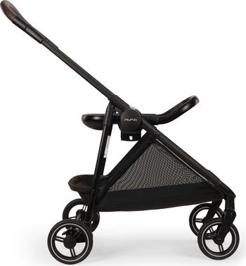 Why parents will love it: Compatible car seats quickly and easily attach to the frame so you and baby can get moving. A luxe leatherette accented pushbar and armbar are a stylish touch that also offer a comfortable travel experience. The large basket holds all your essentials so you never miss a step, and the tracking device pocket in the basket keeps tabs on it wherever you go. The quick-engaging one-touch rear-wheel braking system provides scuff-free security. And the included carry bag conveniently stores your frame away while you're traveling.