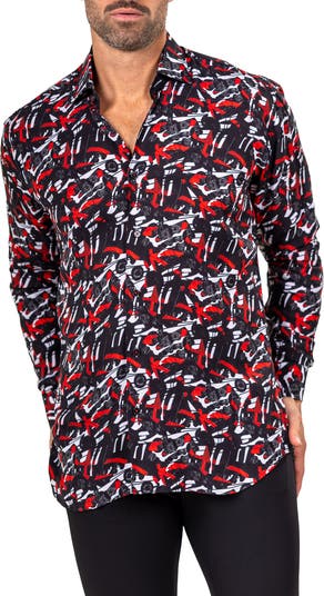 Turn heads in this eye-catching sport shirt made from breathable, subtly lustrous Italian fabric in a fit that's in between trim and regular.