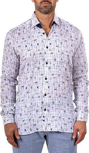 Turn heads in this eye-catching sport shirt made from breathable, subtly lustrous Italian fabric in a fit that's in between trim and regular.