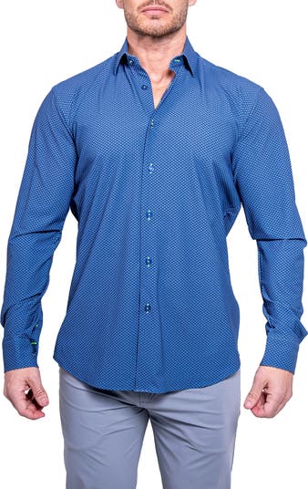 Turn heads in a dusk-to-dawn button-up shirt made from breathable, odor-resistant Italian cotton in a fit that's right in between trim and regular.