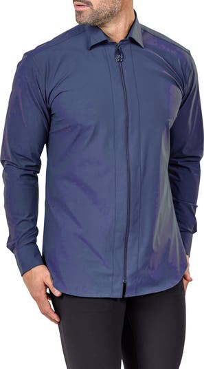 Opt for a contemporary, streamlined look in this zip-up shirt made from superstretchy jersey and finished with a branded hardware pull.
