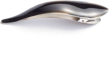 Sleek lines and polished enamel define a handmade hair clip that finishes your look with effortless sophistication.