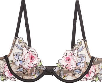 Scalloped demi cups add to the flirty vibe of this lightweight underwire bra with stretchy silk-blend trim.
