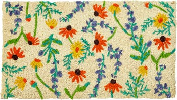Introducing the FIELD FLOWER COIR MAT, a delightful addition to your home that brings a touch of nature right to your doorstep. This charming doormat, a beloved classic for over 30 years, features a vibrant hand-painted design of colorful flowers, meticulously crafted on a durable hand-spun coir base. Measuring 30 inches in length, 17 inches in width, and 1 inch in height, it is the perfect size to welcome guests while adding a splash of summer cheer to your entryway.