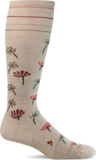 Step into ultimate comfort with patterned socks featuring compression technology that promotes circulation, minimizes swelling and reduces fatigue. A soft and stretchy merino-wool blend and an ultralight cushion sole provides superior support that makes them great for prolonged sitting or standing, flying, travel and exercise.