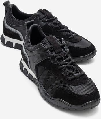 A bold sneaker that pairs refined leather structure with contemporary mesh detailing.