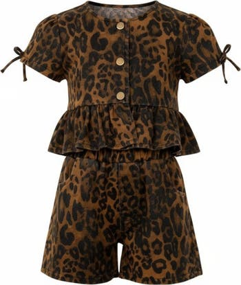 Let her rule the fashion jungle in this fierce and fabulous leopard denim short set designed for bold girls with standout style.