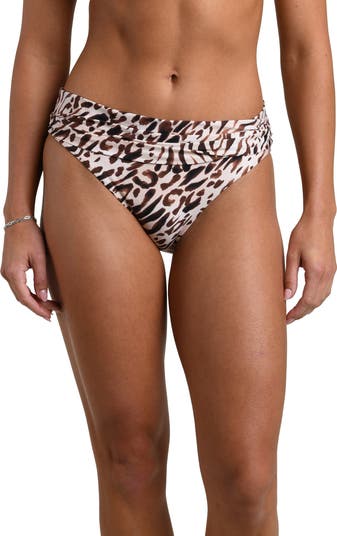 Wild leopard spots bring bold attitude to these hipster bikini bottoms with moderate back coverage designed for sun-drenched escapes.