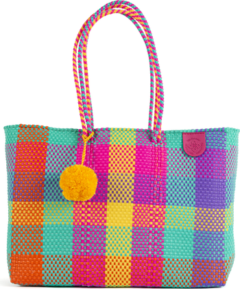 Spacious. Stylish. Sustainably Made. Meet our best-selling Woven Super Tote Bag — a customer favorite for beach days, weekend getaways, and everyday adventures. Handwoven in Mexico from 100% recycled plastic, this tote combines artisan craftsmanship with effortless practicality. Lightweight yet incredibly durable, it’s designed to carry everything you need—whether you’re packing towels and sunscreen for a seaside escape or essentials for a road trip. The Super Tote stands out for its flexible structure, allowing it to expand to fit more while retaining its elegant shape. Its open-top design makes it easy to load and unload, while the sturdy woven handles ensure comfort and strength for carrying heavier items. Each bag takes 20–40 hours to make, reflecting the artistry and dedication of our skilled artisans. Every piece is unique, with slight variations in color and size that add to its authenticity and charm. Perfect for boutiques, gift shops, and resort retailers, this tote offers high visual appeal and versatile functionality—making it one of Tin Marin’s top-performing styles in both retail and corporate orders. PRODUCT FEATURES: -Eco-Friendly Craftsmanship: Made from 100% recycled plastic, blending style with sustainability. -Durable & Flexible: Lightweight, water-resistant, and built to last through countless adventures. - Spacious Design: Fits beach towels, weekend essentials, groceries, or event gifts with ease. - Handmade Quality: Each bag is handwoven by artisans in Mexico, supporting over 200 sustainable jobs. - One-of-a-Kind: Subtle color and size variations make every piece unique. SIZE INFO: Dimensions: 17" L x 13" H x 7" D Handle Drop: 9" Weight: 1.2 lbs