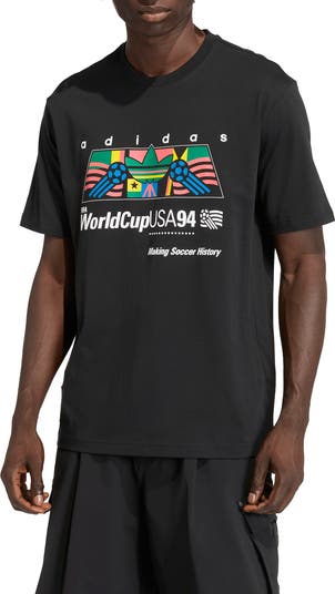 Kicked-up graphics inspired by America's 1994 World Cup keep the game alive on a T-shirt sporting bright colors and bold adidas detailing. Made of soft, breathable cotton, it's perfect for playing, relaxing and reliving the glory days of the historic tournament.