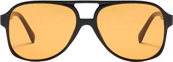 The fusion of classic style and modern polycarbonate lenses elevate eye-catching sunglasses with goldtone branded temples.