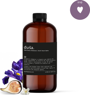 Reduce - Reuse. At duša we are strongly committed with our planet. With our Air Freshener Spray Liquid Refill you can re-use your glass containers and reduce the impact generated on the environment. TASTING NOTES: Green fig leaf, cassis fruit, hyacinth, jasmine, chrysanthemum and lily. HOW TO USE: Pour content into an empty Duša Room Spray. Last up to one refill. INGREDIENTES / INGREDIENTS : Agua (Water), Alcohol Desnaturalizado (Alcohol Denat), Polisorbato 20 (Polysorbate 20), Fragancia (Fragrance).