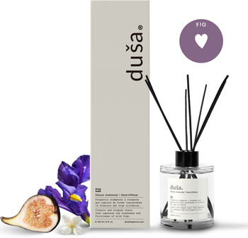 The Fig fragance is a classic and elegant scent that instantly captures the exquisite native Mediterranean freshness and fruitiness of the wild figs. This aroma elevates, refreshes and revitalize any space with its intricate fusion of woody and floral aromas. TASTING NOTES:Fig Leaves, Nuts, Grass Greens, Cassis Fruits, Fig Milk, Hyacinth, Jasmine, Chrysanthemum, Lily, Fig Woods, Amber. HOW TO USE: Remove lid and place reeds in diffuser oil. Allow oils to travel the lenght of the reeds. Flip reeds weekly or when scent becomes faint. INGREDIENTES /INGREDIENTS : Isopropilidenoglicerol (Isopropylideneglycerol),Fragancia Premium y aceites esenciales (PremiumFragrance infused with essential oils),Metoximetillbutanol (Methoxymethylbutanol). Contiene alérgenos de fragancia (Contains fragrance allergens).