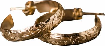 These vintage-inspired chunky hoop earrings are the perfect mix of feminine and modern. They feature a delicate floral design that adds the perfect sparkle to any look. These textured hoops add a timeless and classic edge to your everyday jewelry lineup.