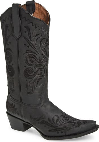 Intricate tonal embroidery plays up the suave monochrome style of this classic Western boot.