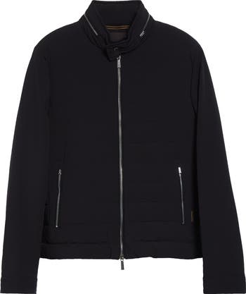 A quilted core insulated with goose down packs lightweight warmth into this water-resistant jacket that's perfect for mild weather and light showers. A two-way zipper opens from top or hem to tailor ventilation and zippered pockets live both inside and out for secure stow.