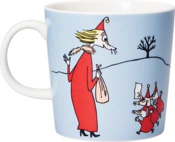 Add a touch of Finnish whimsy to your tablescape with this dishwasher- and microwave-safe mug featuring the strict, fun-despising character Mrs. Fillyjonk with her children from the philosophical and deeply charming Moomintroll series by Tove Jansson.