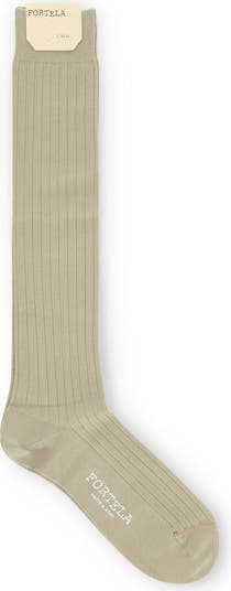 Fortela Men's Knee High Socks embody excellence. Crafted in Italy from mercerized cotton, these socks offer superior resistance and a vibrant style. The double twisted yarns ensure stability and prevent deformation, setting them apart from traditional cotton. Perfect paired with leather shoes or sneakers, these socks add a touch of Fortela's refined style to any outfit, making them a timeless investment.
