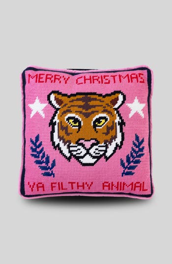 Furbish Filthy Animal Needlepoint Pillow, Main, color, Pink