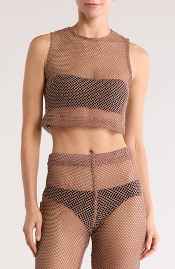 This sheer mesh top is done in an airy, cropped silhouette making it the perfect cover-up for beach days and beyond.