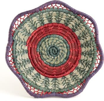 The Fina Basket is a smaller version of the popular Josefina Basket. Intricately handwoven of native grass and pine needles with colorful raffia accents and a scalloped rim. Handmade and designed by the women of the El Triunfo basketweaving group. This pine needle basket makes a wonderful tabletop accent, but was designed to be used! Handmade and fair trade.