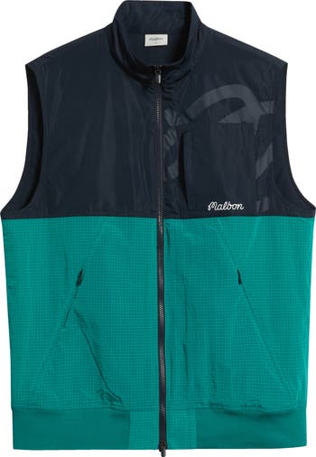 This hybrid two-panel vest made with a two-way front zipper and concealed zip pockets is topped with a stand collar to block the wind.