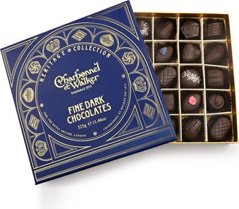 A decadent treat for dark chocolate lovers, this elegant gift box houses an assortment of flavors perfect for enjoying the classics and finding a new favorite. Flavors include Dark Chocolate Falstaff, Amandes, Crème Cassis, Caramel Noix, Lemon Coconut and many more.
