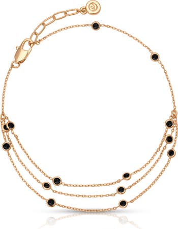 Bezel-set cubic zirconia bring glinting dimension to layered chains in this draping anklet.