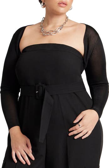 A fitted open-front bolero knit that adds a refined finishing layer.