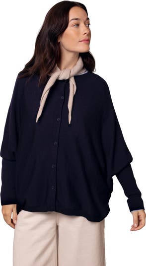 Crafted from soft merino wool, this fine knit cardigan features a crew neck, slim central placket, and corozo buttons. Designed with deep ribbed sleeves and a wide, boxy silhouette, it offers a slouchy fit ideal for relaxed layering.