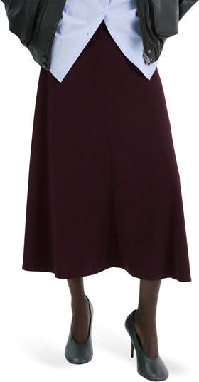 Refresh your essentials with this pull-on midi skirt framed by a wide waistband and knit in a fluid A-line silhouette.